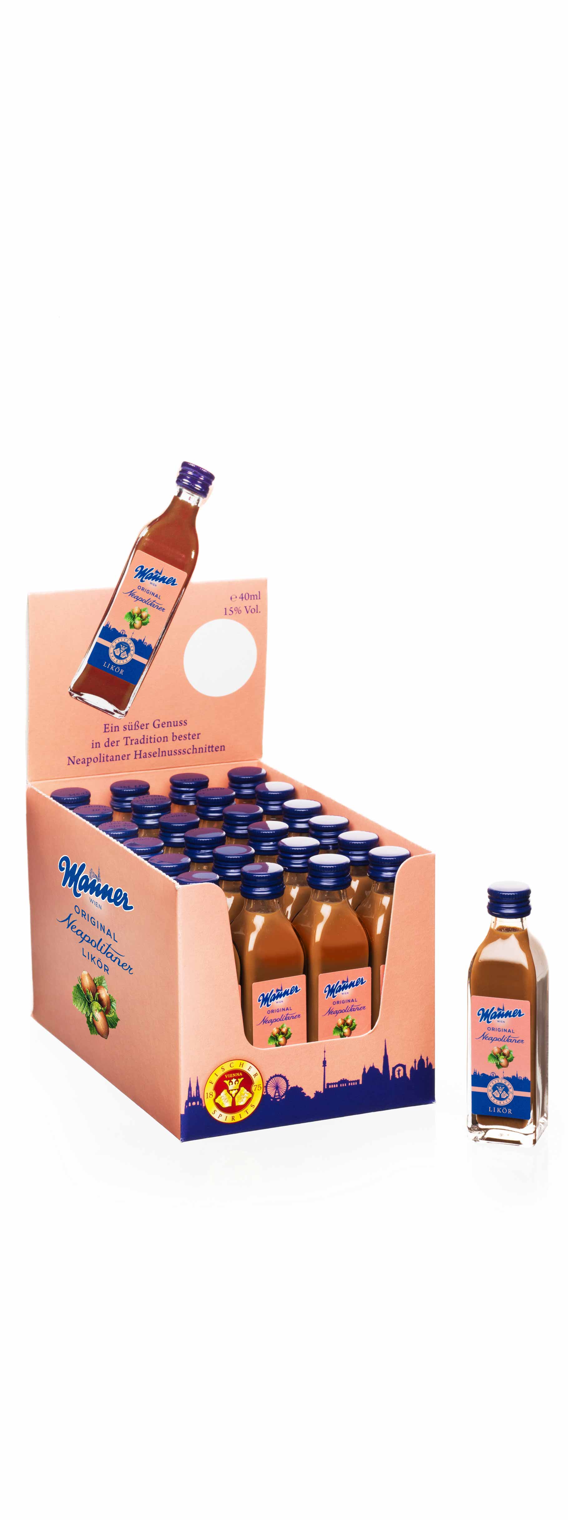 A well-balanced cream liqueur composition with the typically hearty chocolate-hazelnut taste of traditional Viennese “Manner” wafers. Enjoy it straight up, in your coffee, over vanilla ice cream or as part of a shake! Licensed from the Viennese company Josef Manner & Comp. AG