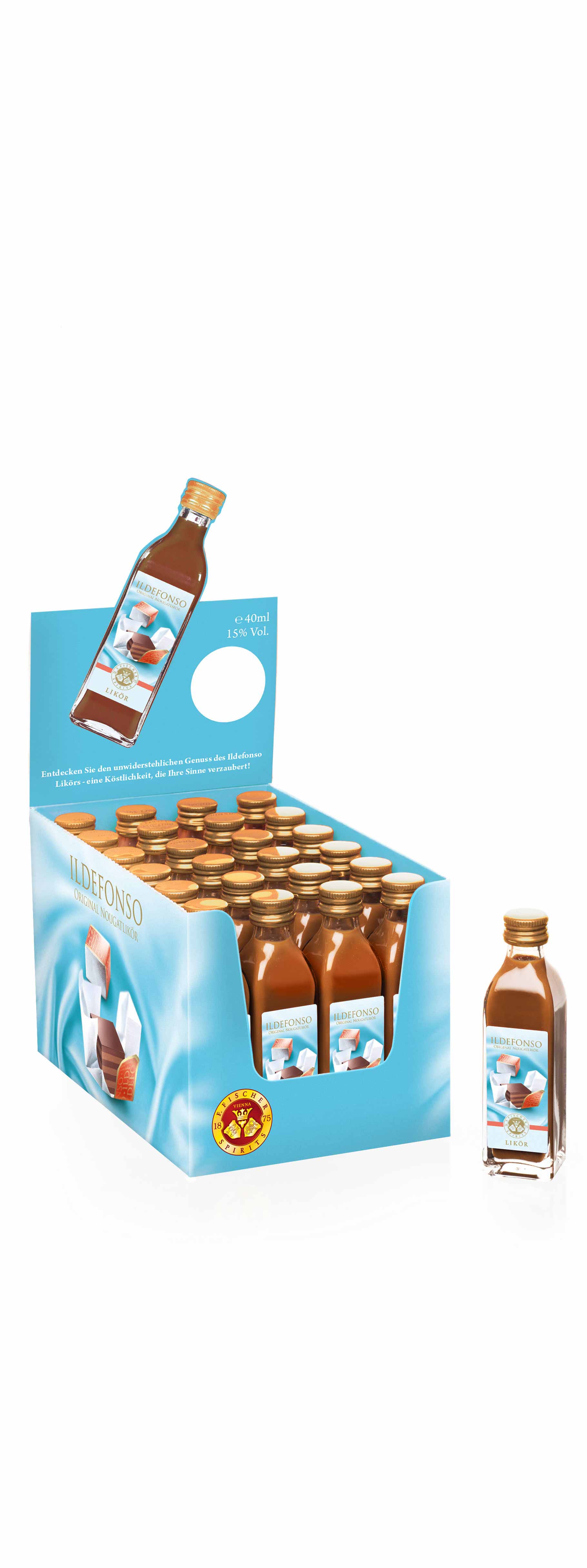 Ildefonso Nougat Liqueur is the epitome of indulgence. The delicate nougat flavor entices the senses with its rich, nutty aroma and silky texture. Every sip is a journey into the heart of Ildefonso's enchanting nougat universe. Licensed by Josef Manner & Comp. AG.